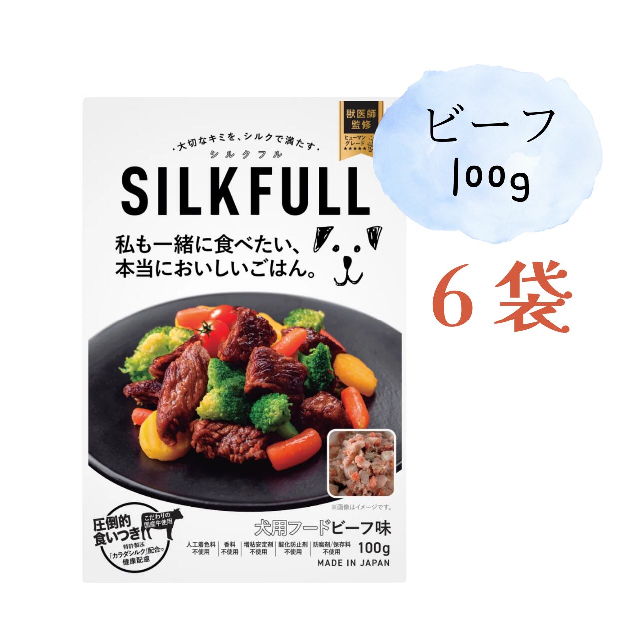 6袋セット [メール便無料]SILKFULL 犬用ウェットフード ビーフ味 100g (シルクフル)