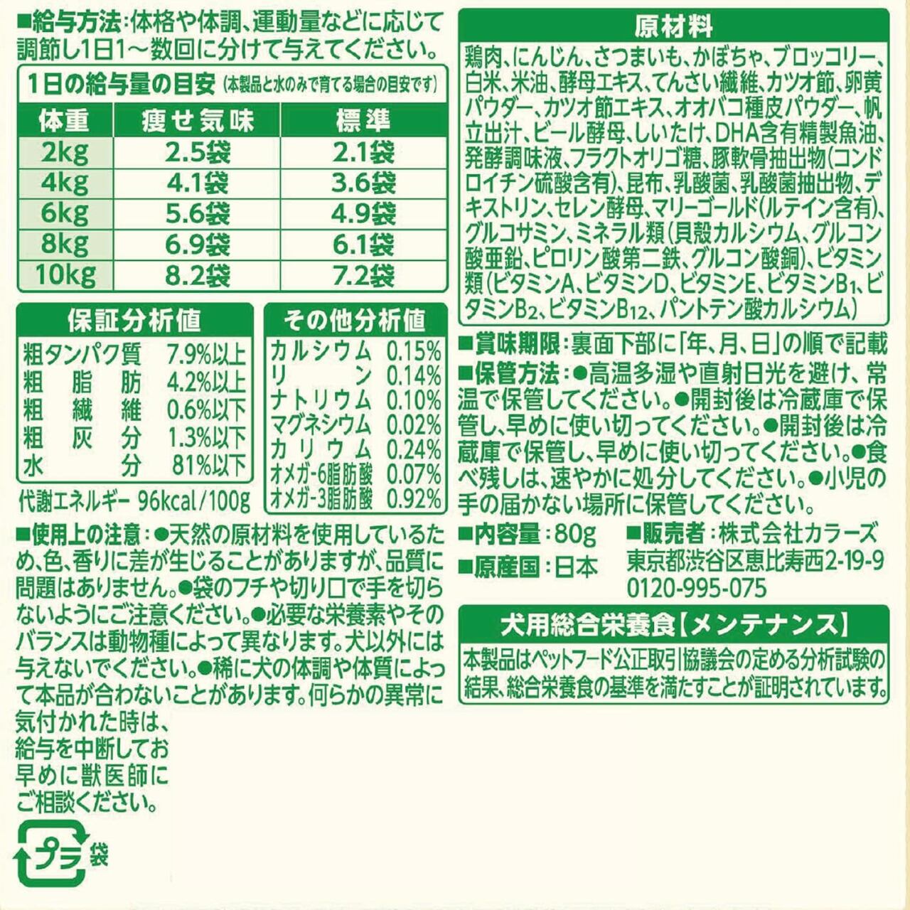加齢による食欲や嗅覚の衰えに配慮し、和風だし素材のおいしさとうまきの相乗効果を狙ったレシピにしています。具体的には、 犬たちがおいしいと感じる素材である九州産の鶏生肉をメインに、カツオ節や国産昆布、しいたけ、帆立出汁といった和風だしのうまみ素材を配合しています。