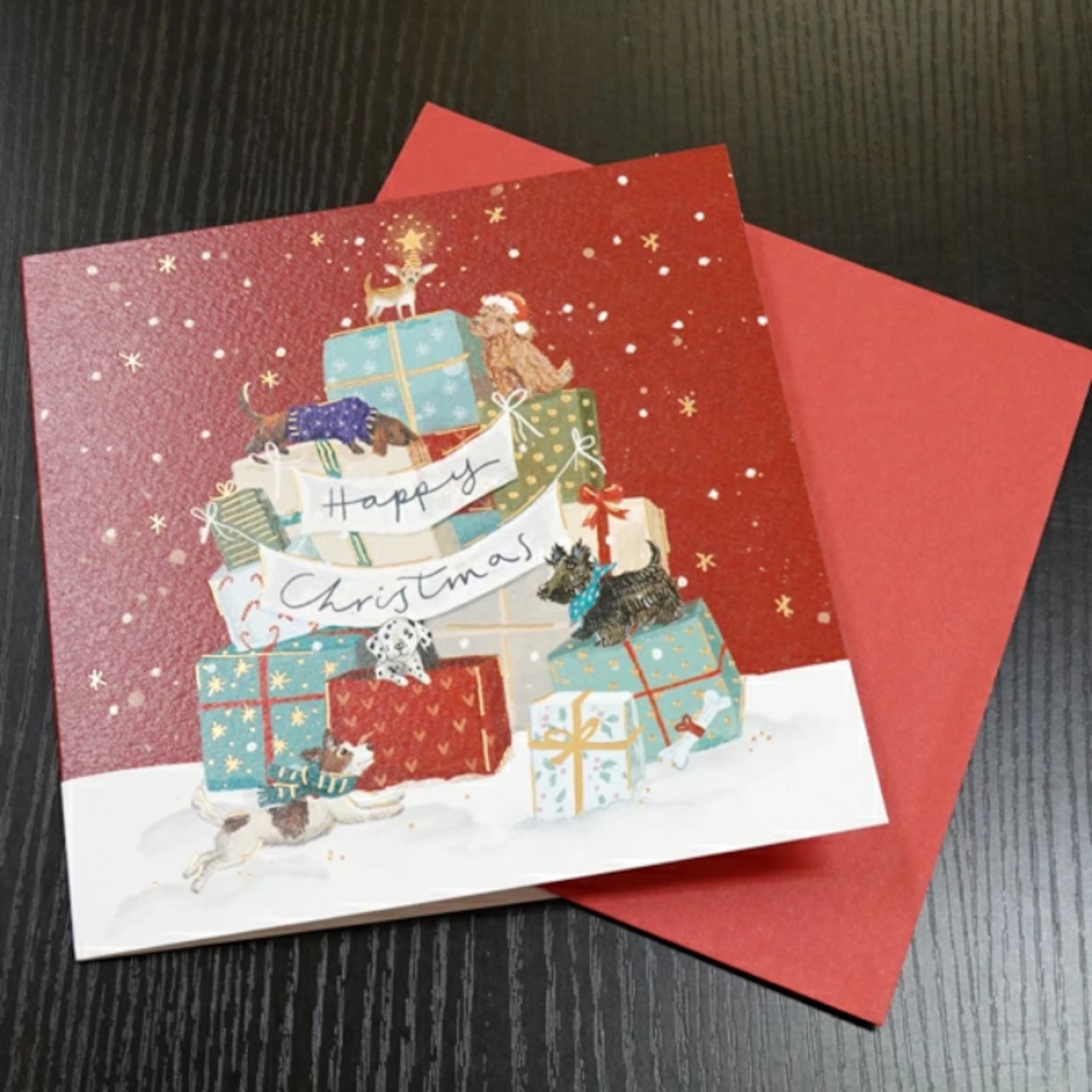 「犬とプレゼント」2025新作 クリスマスカード 英国製 Ling Design