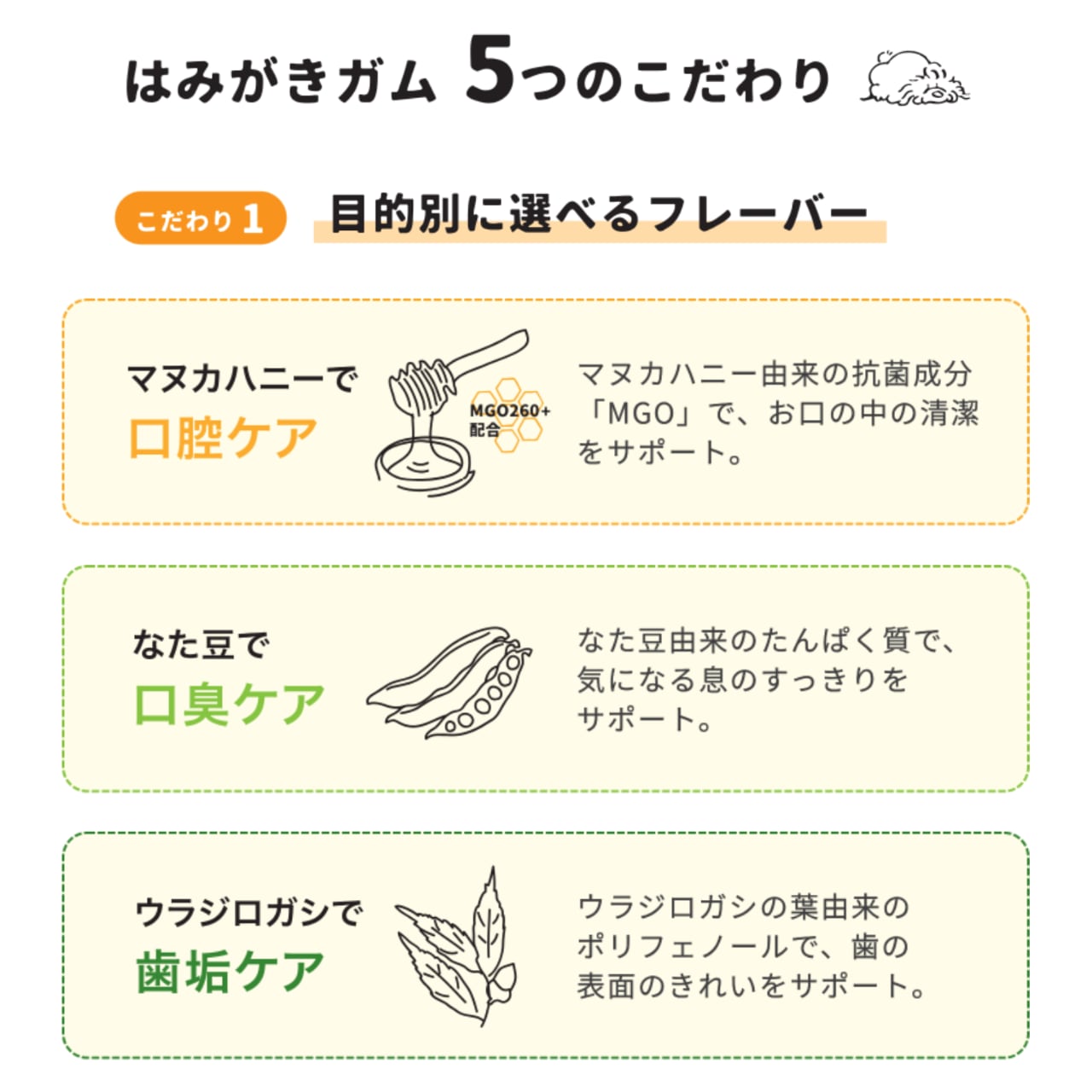 ウラジロガシと青パパイヤを配合し、歯垢ケアと食後の消化をサポート。