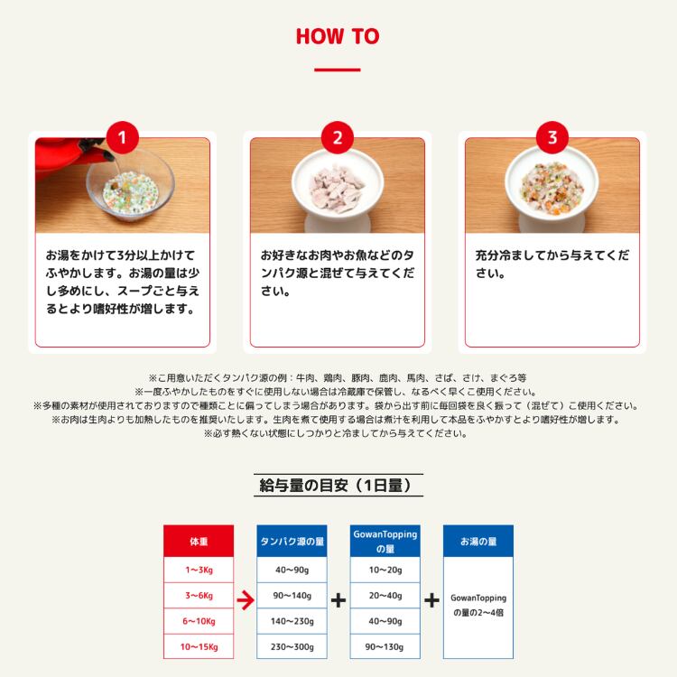 ※本品は総合栄養食ではありません。新鮮なタンパク源と合わせてはじめてバランスの取れた食事となります。