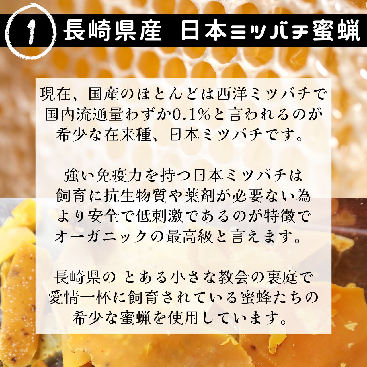そんな日本ミツバチのミツロウの特徴は、より優れた保湿力と抗菌力、高い浸透力(馴染みが良い)。