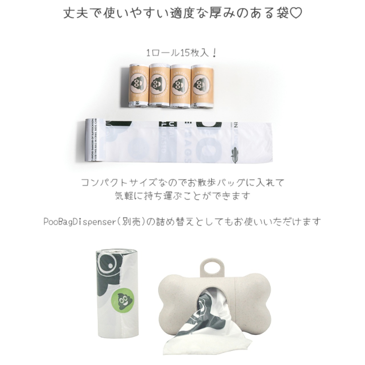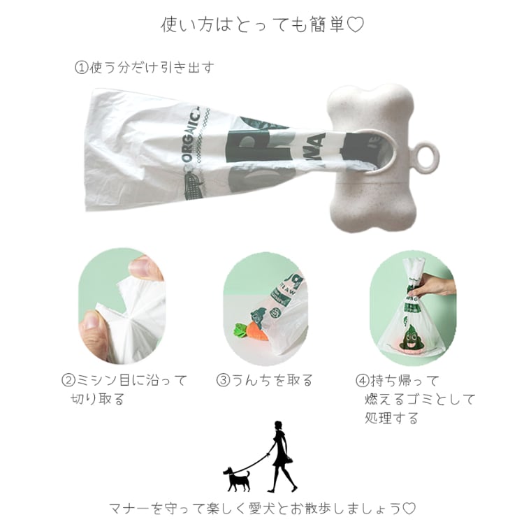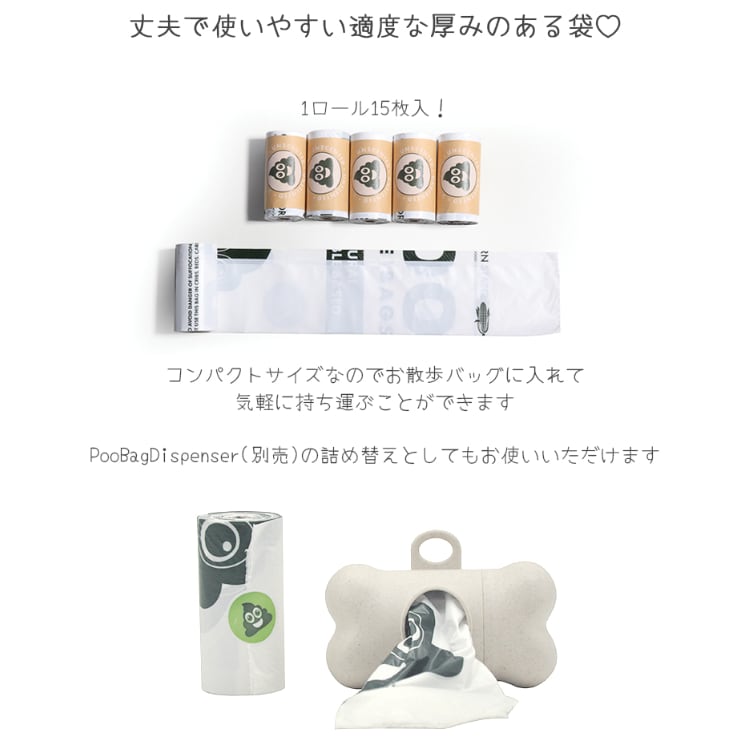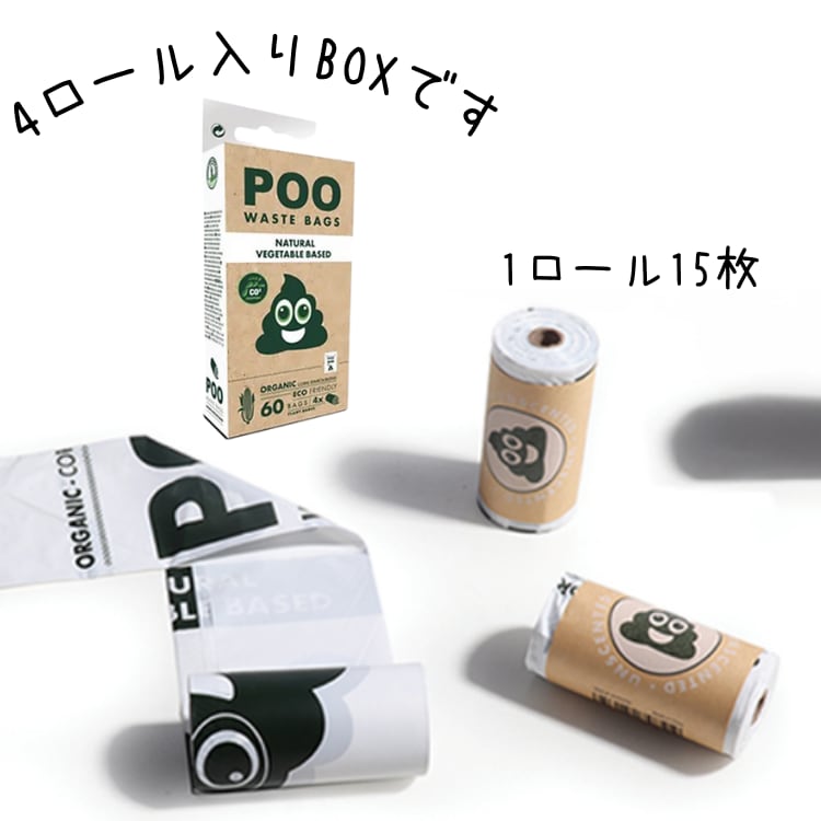 【合計60枚入り おしゃれ&無香料のうんち袋BOX!】1ロール=15枚巻き ×4ロール