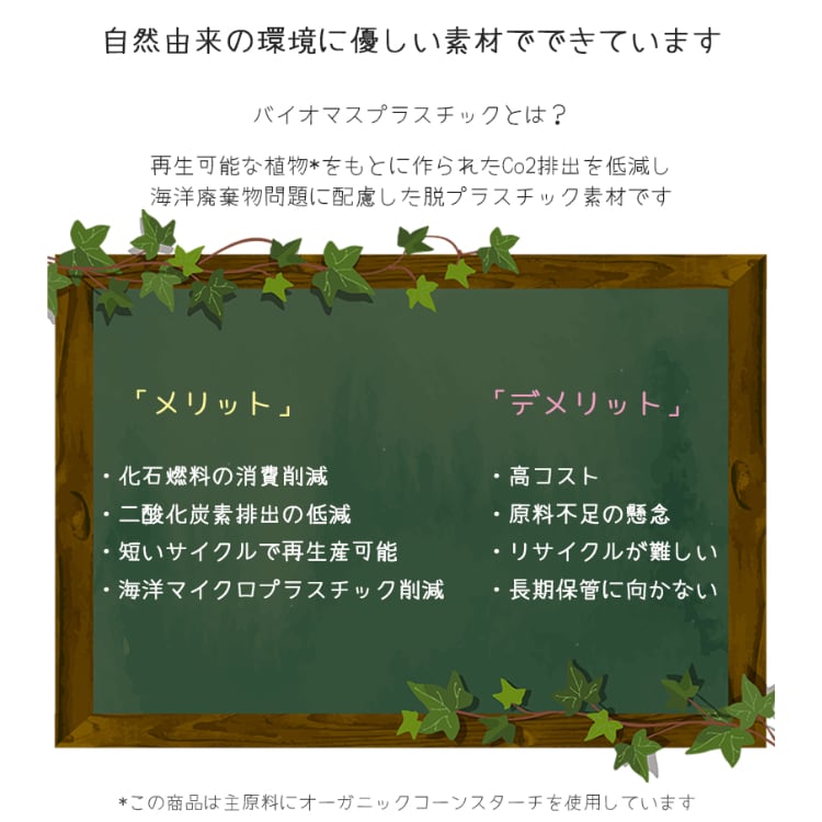 【素 材】バイオマスプラスチック(オーガニックコーンスターチブレンド)