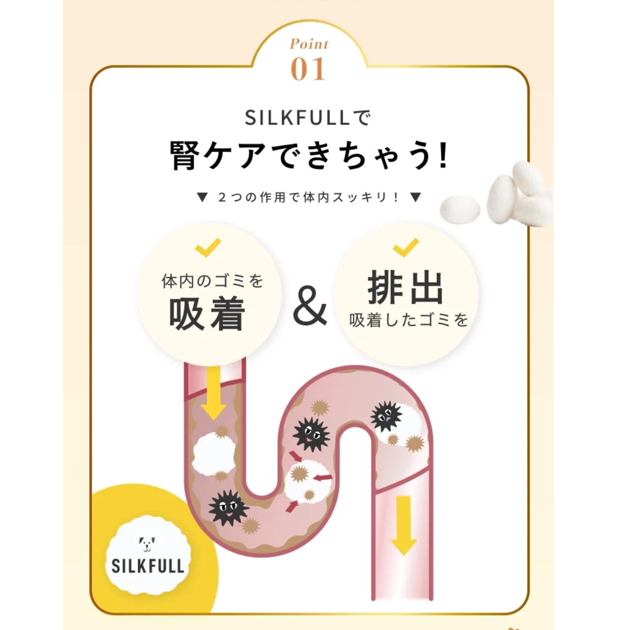 ・シルクたんぱく質によるアンモニア吸着、低リン設計で腎臓に配慮