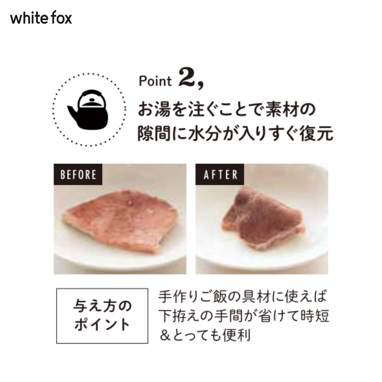 お湯をかけると身がほぐれやすく柔らか食感に。
