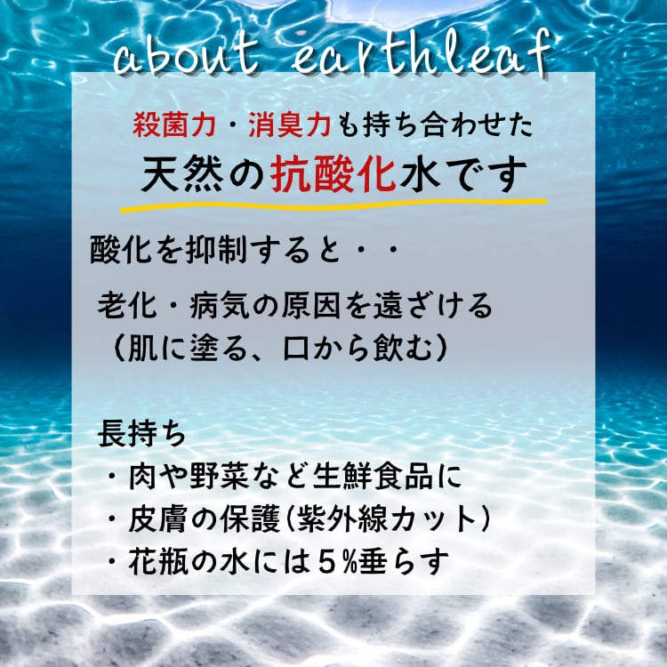 天然成分100%の抗酸化水アースリーフウォーターをベースに、ハイドロキシアパタイト・クロロフィル・甘草を配合した歯磨き用ジェルです。